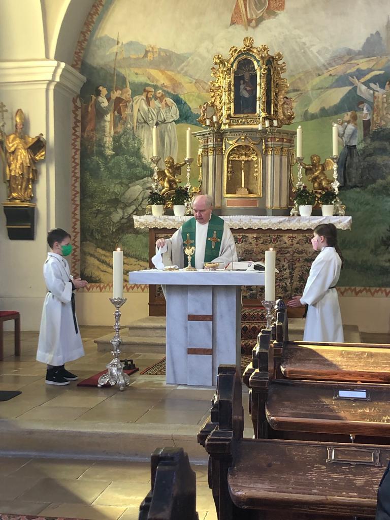 Die Ministrantenschar ist gewachsen. Wir freuen uns über die Unterstützung von Christian Schrey und Katharina Reisner.