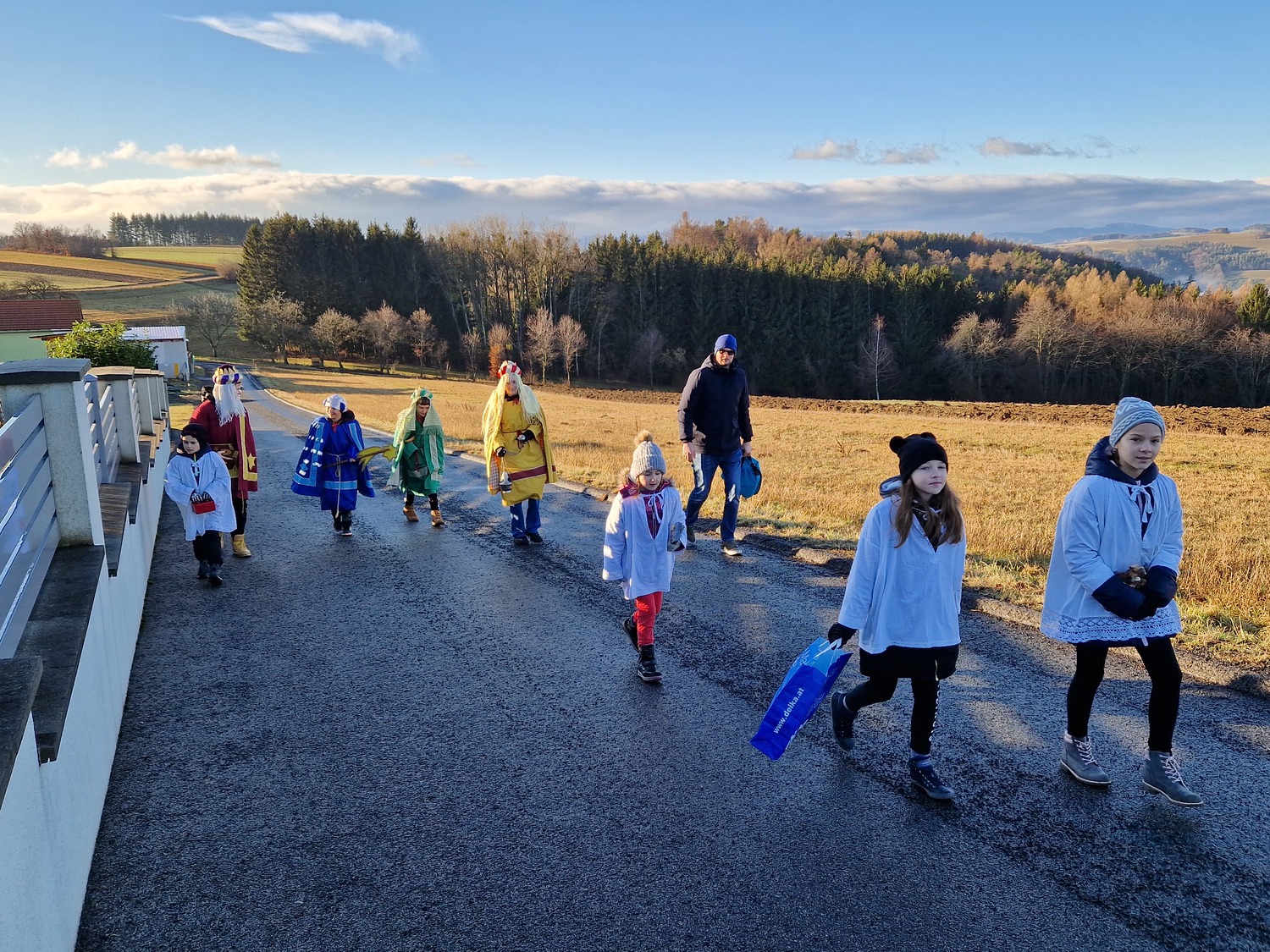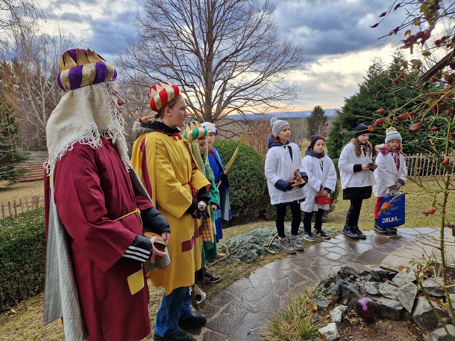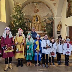 Die Ministranten setzten auch heuer wieder ein Zeichen - für eine gerechte Welt. Bei angenehmen Temperaturen besuchten sie die Häuser in Landsee und Blumau um Spenden für die Dreikönigsaktion zu sammeln.