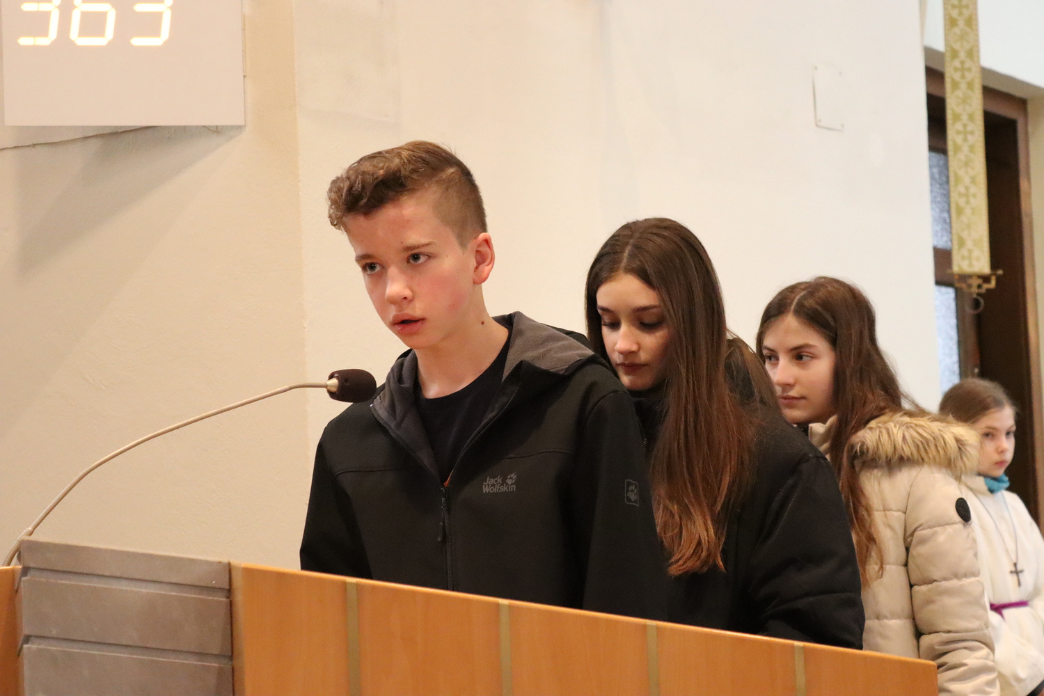 "Gemeinsam für faire Care-Arbeit" war der Slogan des heurigen Fastensuppenessens zugunsten der Aktion Familienfasttag der Kath. Frauenbewegung. Im Zentrum des Gottesdienstes standen philippinische Arbeitsmigrant:innen und ihre Familien, die als Sorgearbeiter:innen (z.B. als Haushaltshilfen, Pflegekräfte, Kindermädchen oder Krankenschwestern) im Ausland arbeiten. Mithilfe von Symbolen und Texten machten die Firmlinge auf die schwierige Situation besonders der Frauen und zurückgelassenen Kinder aufmerksam und gaben Impulse zum gemeinsamen Gebet.