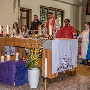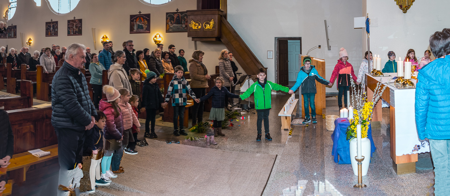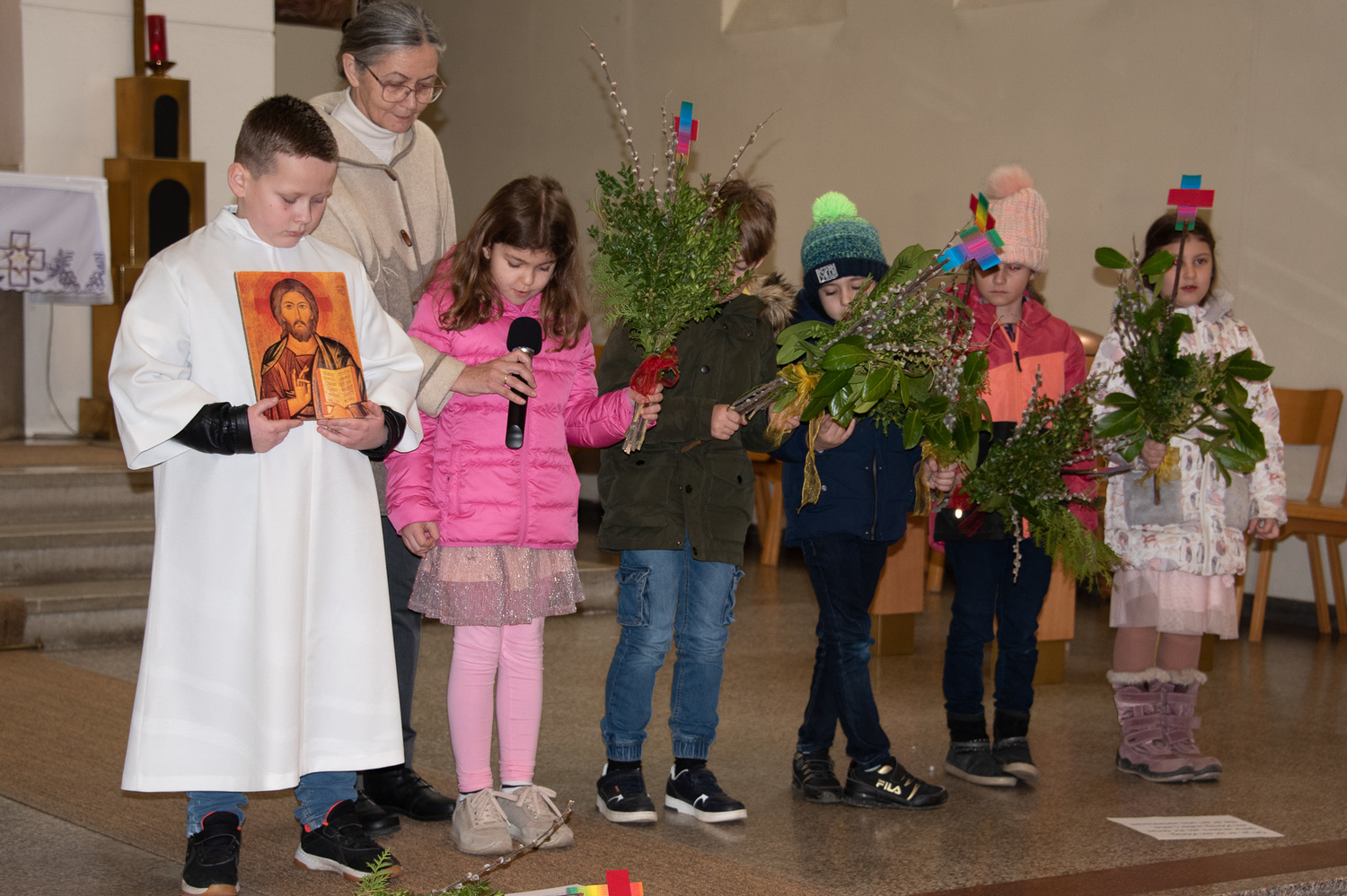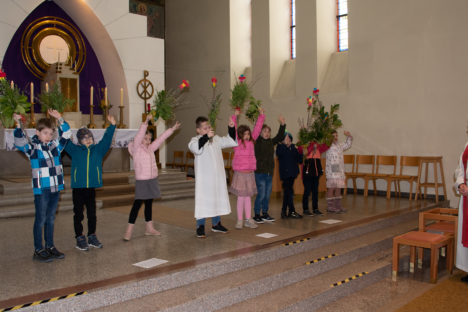 Einen sehr feierlichen Palmsonntag erlebten viele Gläubige im Gedenken an den Einzug Jesu in Jerusalem. Vor der Franziskuskirche segnete Pater Deiva die Palmzweige und lud anschließend zur Prozession zur Pfarrkirche ein. Die Lesungen und Passion erinnerten an das Leiden Christi. Im Schlusslied, das die Erstkommunionkinder mit Gesten gestalteten, erklang der Wunsch aller: „Shalom – der Friede des Herrn sei mit dir!“