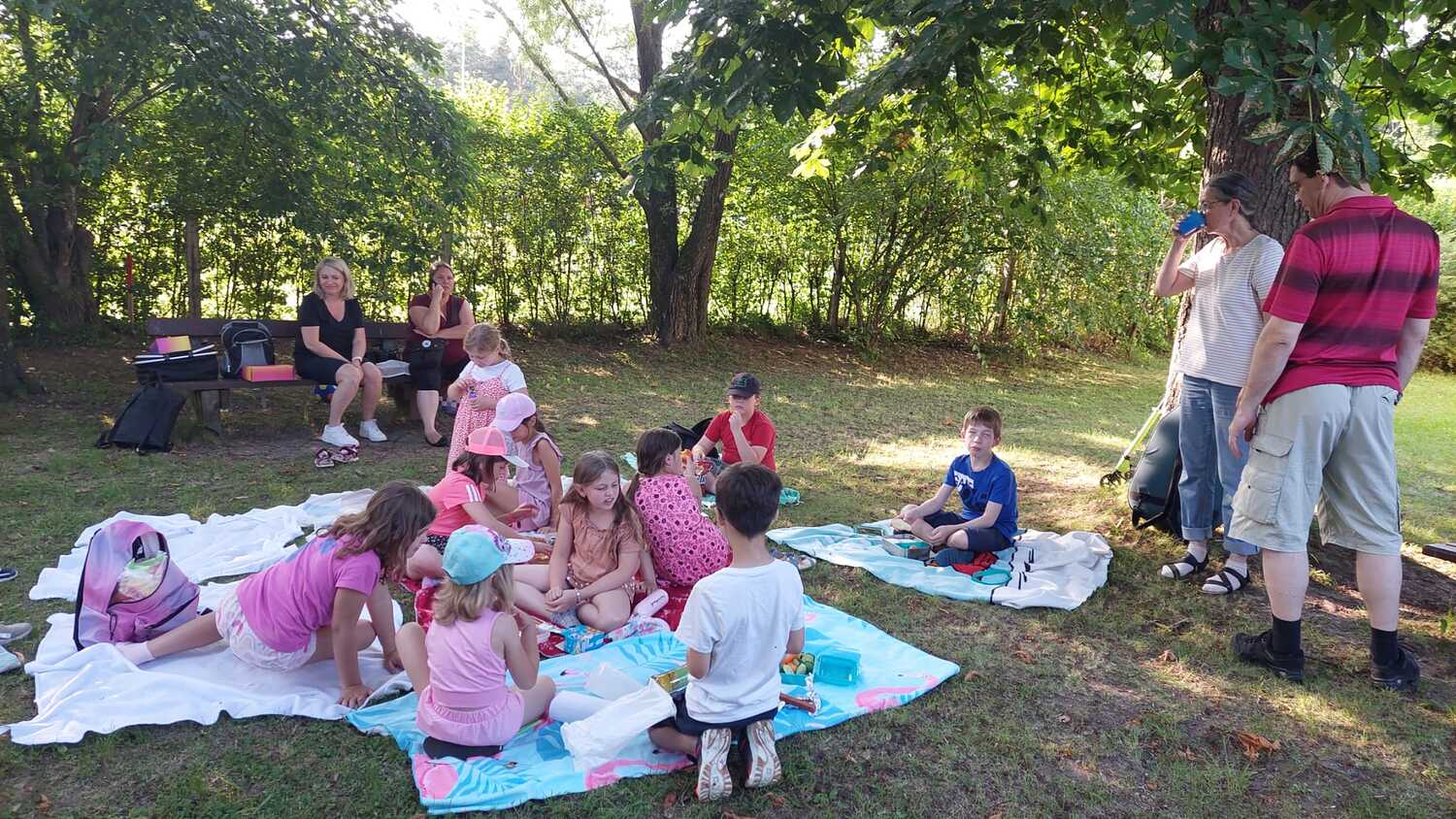 Danach packten die Kinder ihre Jause aus und ganz selbstverständlich wurde beim Picknick geteilt - wie es Jesus vorgemacht hatte. Mit einem Ballspiel und Tanz, bei dem die Kinder auch ihre Eltern motivierten, klang der gelungene Nachmittag aus. Auf dem Heimweg schlug Pater Deiva vor noch ein Eis zu schlecken - das ließen sich die Kinder nicht zweimal sagen. Herzlichen Dank für alle schönen Treffen. Im Herbst wollen wir bei anderen Gelegenheiten zusammenkommen!