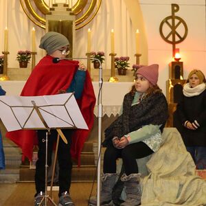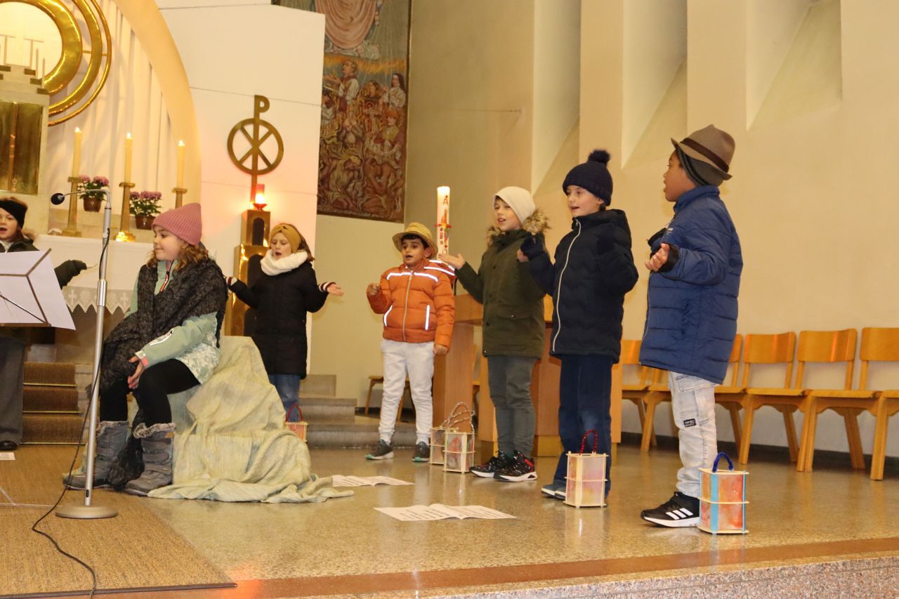 Die Martinsandacht nach dem Laternenzug vom Hauptplatz zur Kirche wurde von den Kindern der Volksschule unter der Leitung der Religionslehrerin Nicole Zagler gestaltet. Mit dem Lied "Ich gehe mit meiner Laterne" zogen die Kinder mit ihren Laternen in die dunkle Kirche ein. Die KInder der dritten Klassen spielten die bis heute beeindruckende Geschichte des Mantelteilens und beim Lichtertanz mit den Laternen brachten die Kinder Licht in die dunkle Kirche und in die Herzen der Mitfeiernden. Zum Abschluss segnete Pater Rayappan alle Kinder und ihre Familien, damit es allen gelinge, immer mehr nach dem Vorbild des Heiligen Martin zu handeln.