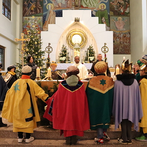 Bei der Messe am Dreikönigstag bedankten sich P. Rayappan, die Messbesucher:innen und Barbara Buchinger für diesen großartigen Einsatz. P. Rayappan betonte das Motto "Kinder helfen Kindern" und zeigte sich beeindruckt über das Engagement der KInder und des gesamten Sternsingerteams. Mit dem Spendengeld werden jährlich auch Projekte in seiner Heimat Indien unterstützt, z.B. der Bau von Schulen.