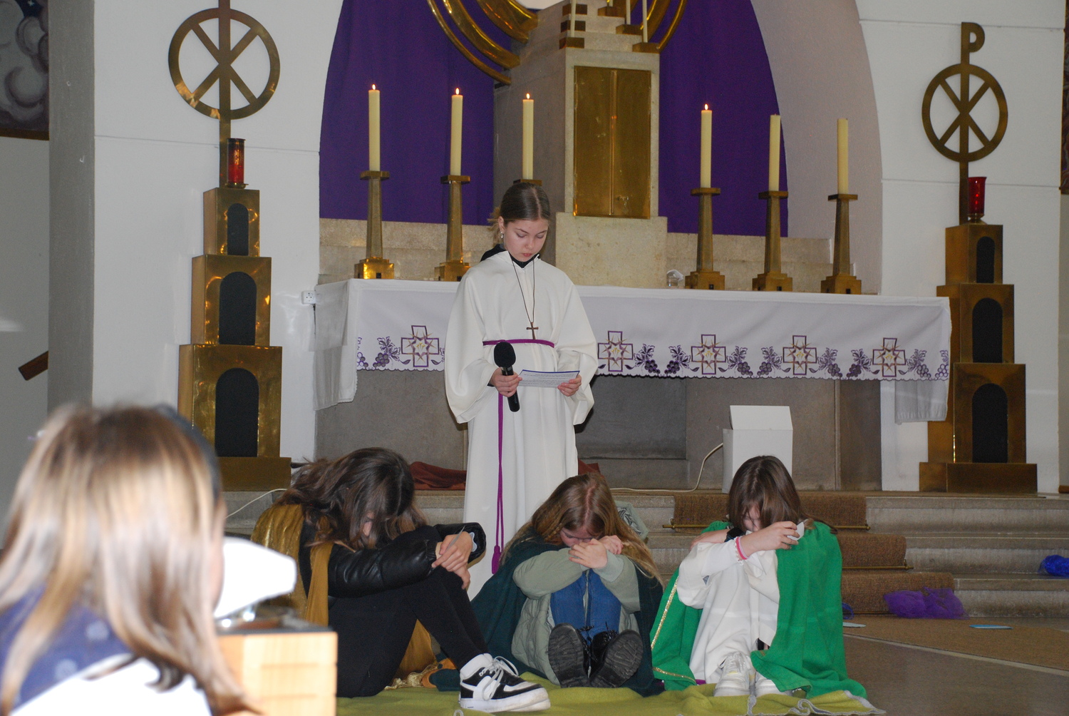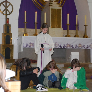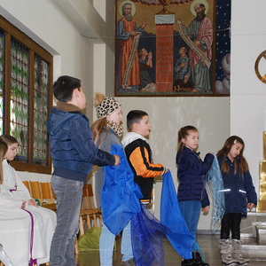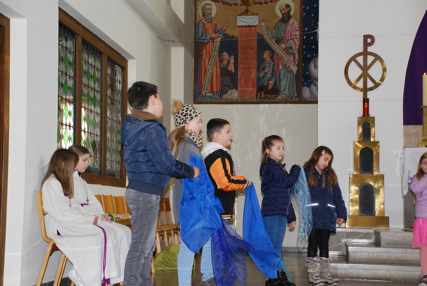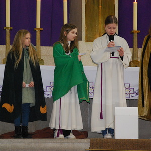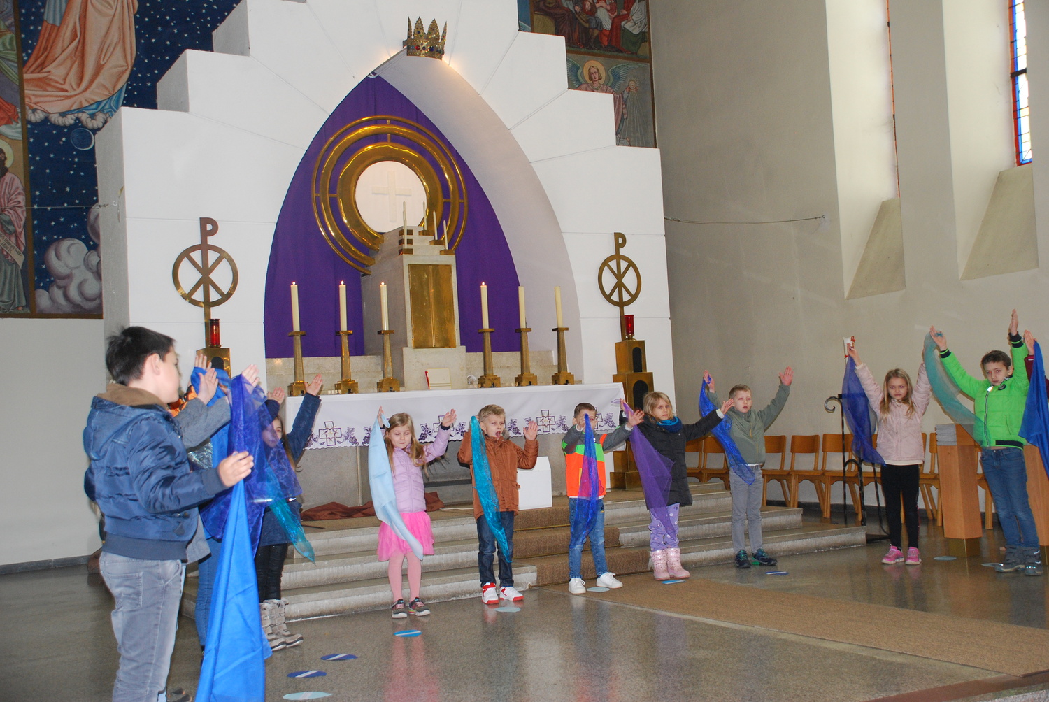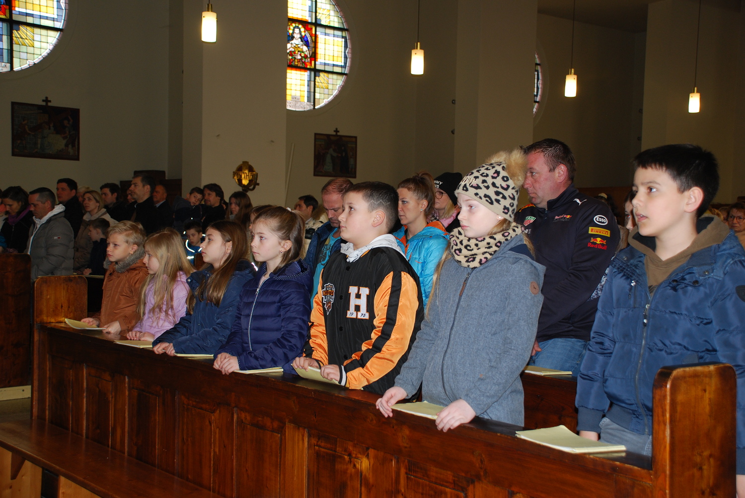 14 Kinder machten sich im Gottesdienst Ende Feber auf den Weg zu Jesus, der Quelle des Lebens. In den Texten erinnerten sie die Gläubigen, welche guten Gaben – etwa Frieden, Freude, Hoffnung - aus der Quelle Gottes sprudeln. Die passenden Lieder begleitete die Musikgruppe Arabesque. Geschwister der Erstkommunionkinder verkündeten mit Pater Deiva in einem Spiel das Evangelium von der Verklärung Jesu am Berg Tabor. Die Eltern lasen Fürbitten, Lesung und ein gemeinsames Segensgebet, das die Kinder auch an die Gottesdienstbesucher verteilten. Bravo Kinder! Hoffentlich werden ihr noch öfter Messen in unserer Kirche mitgestalten