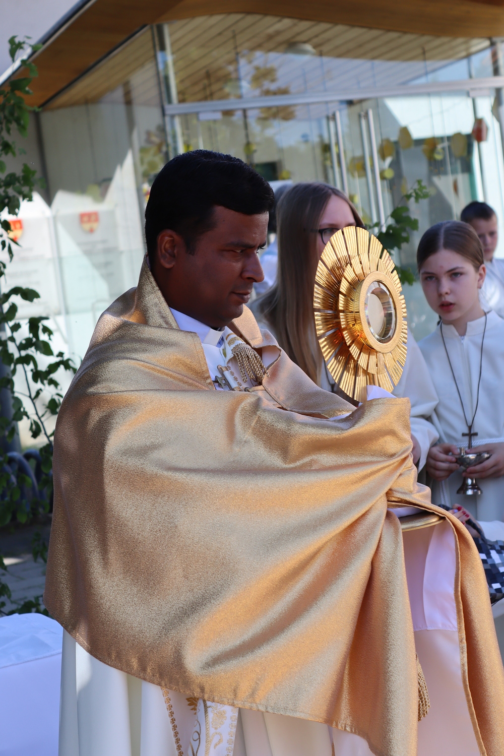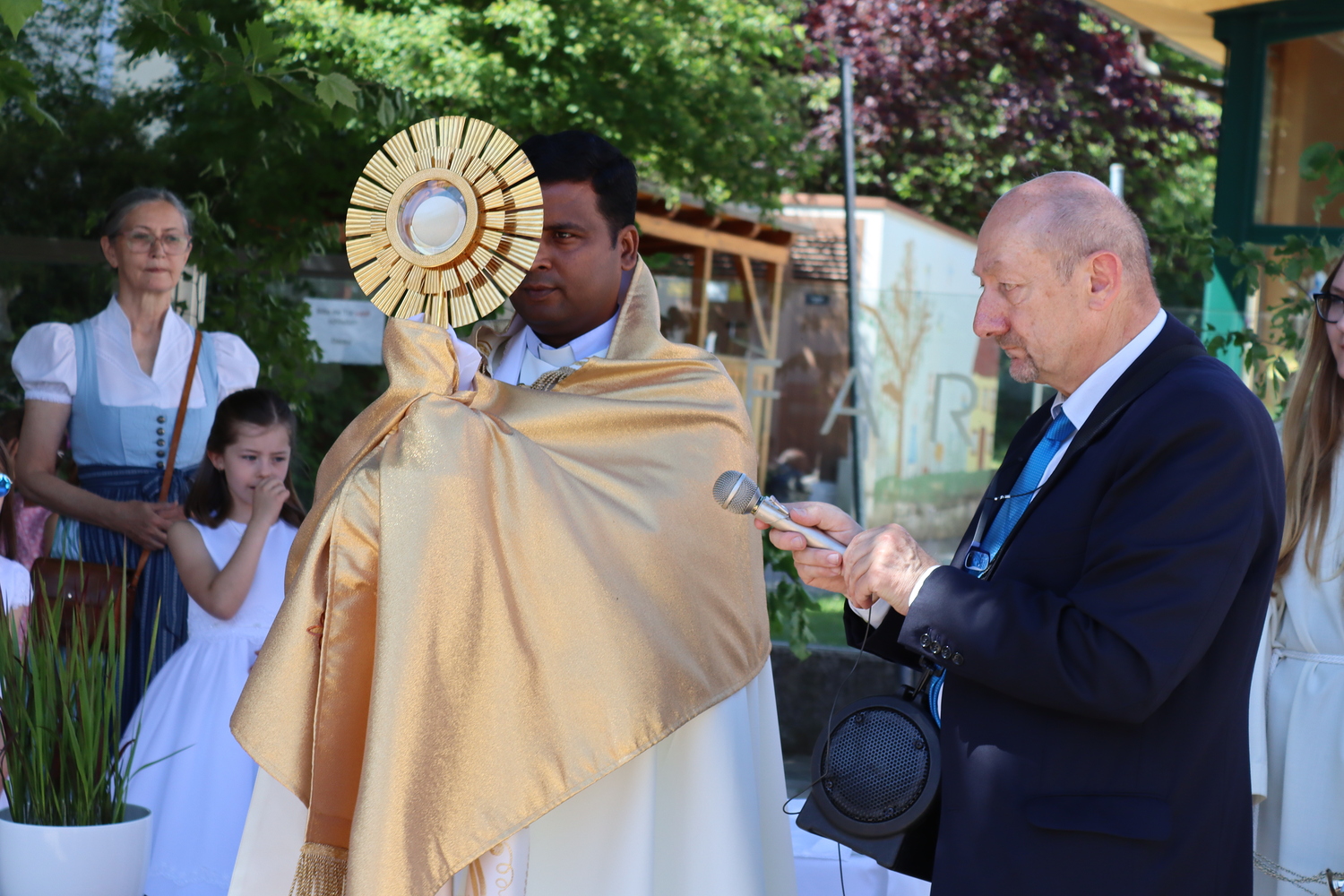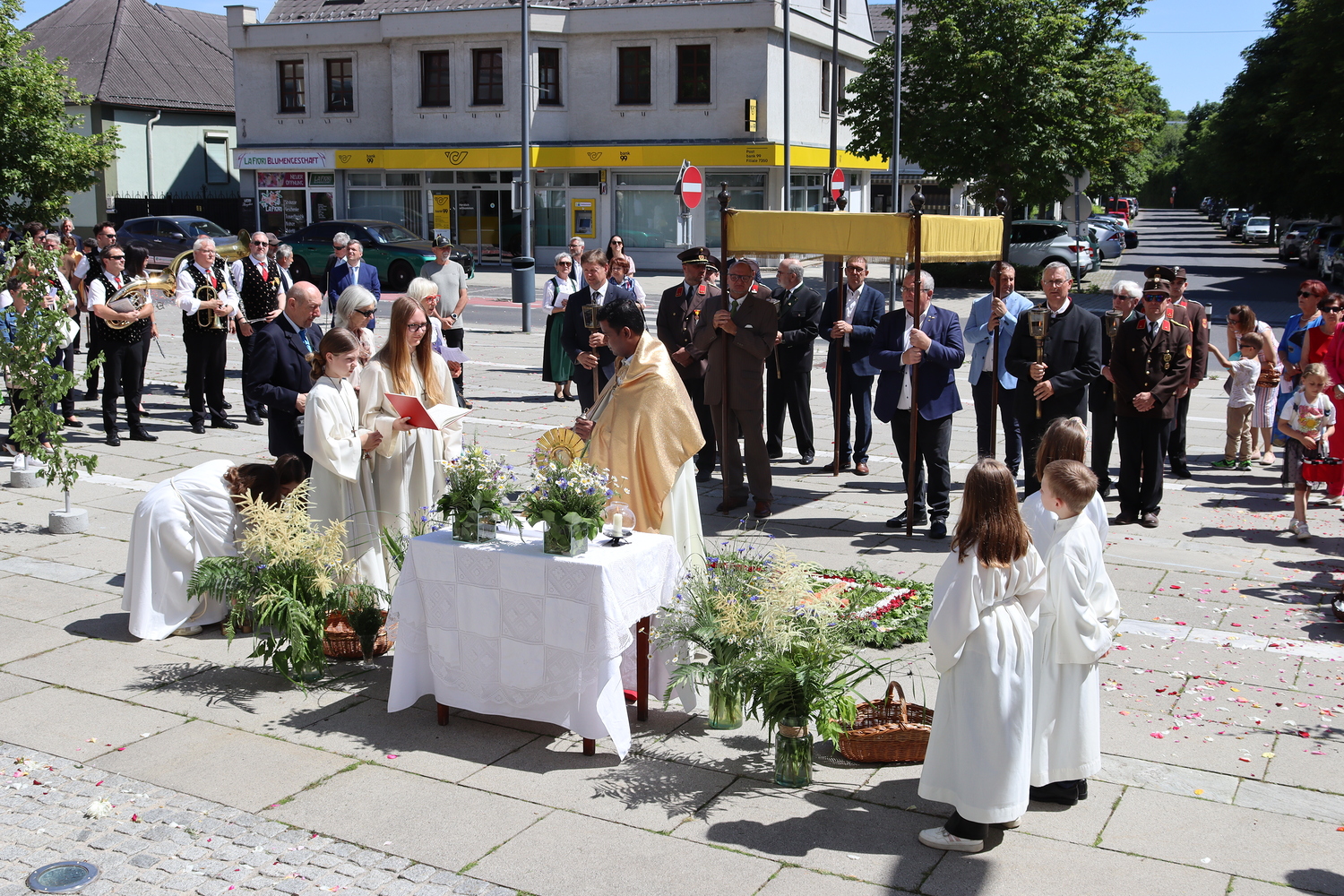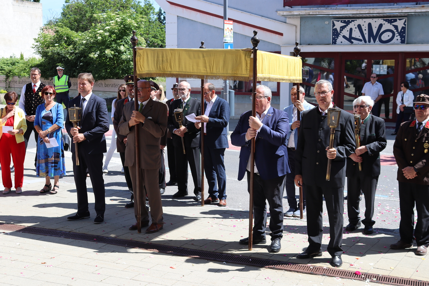 Nach der Messe begann die Prozession mit der konsekrierten Hostie durch Oberpullendorf. Ein Zeichen der Zuwendung Gottes zu Oberpullendorf, unserem Wohn-, Arbeits- und Lebensraum, zur Erde, zur Schöpfung und zur ganzen Wirklichkeit des Lebens. Diese Präsenz Gottes wurde in den Fürbitt- und Segensgebeten besonders zum Ausdruck gebracht.
