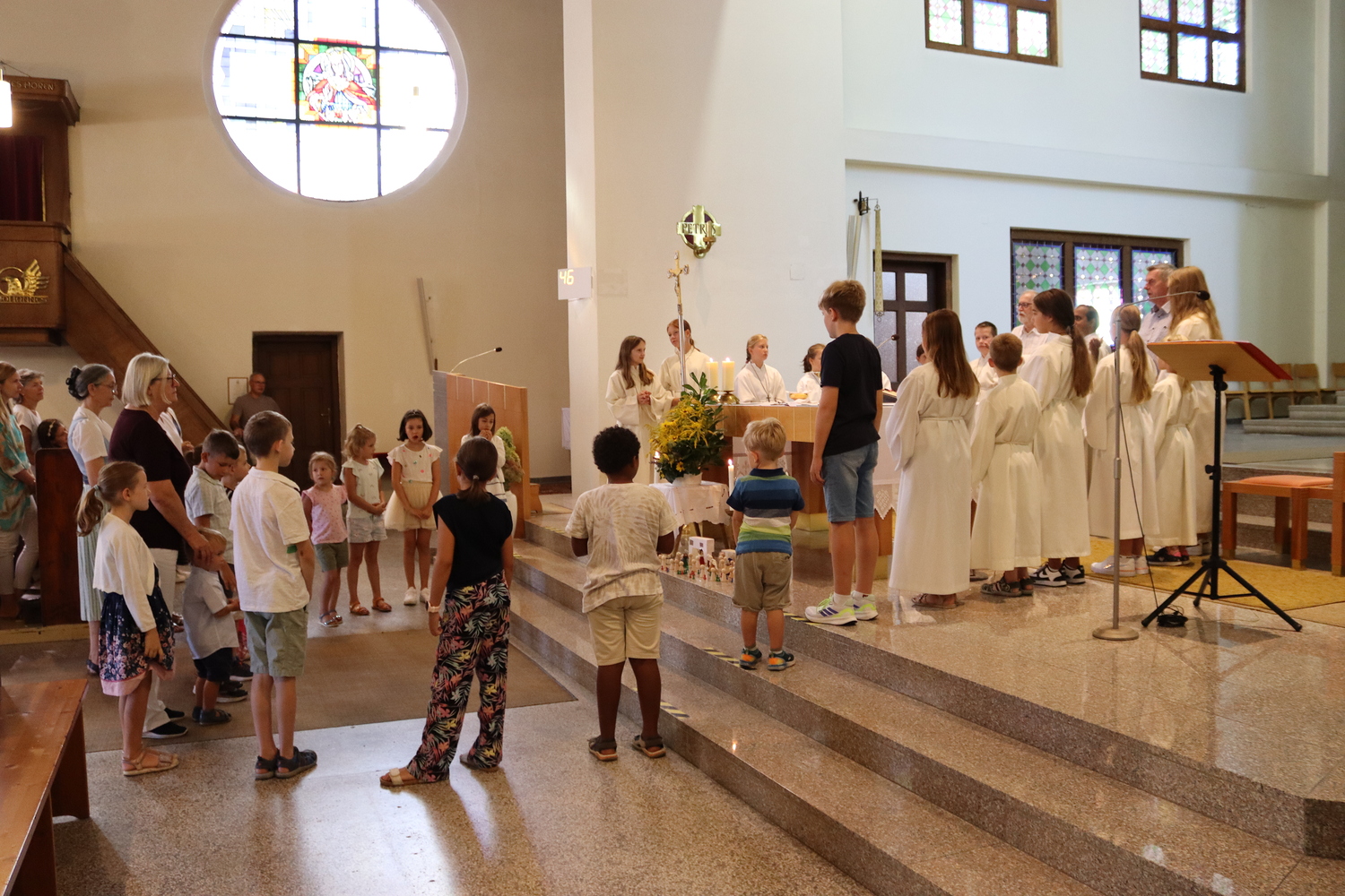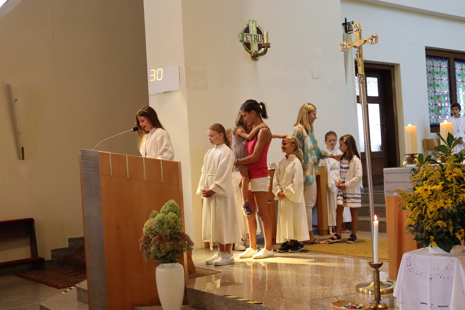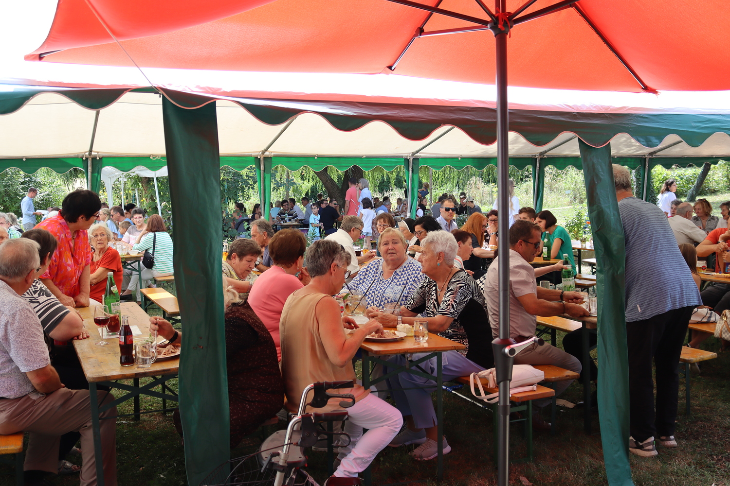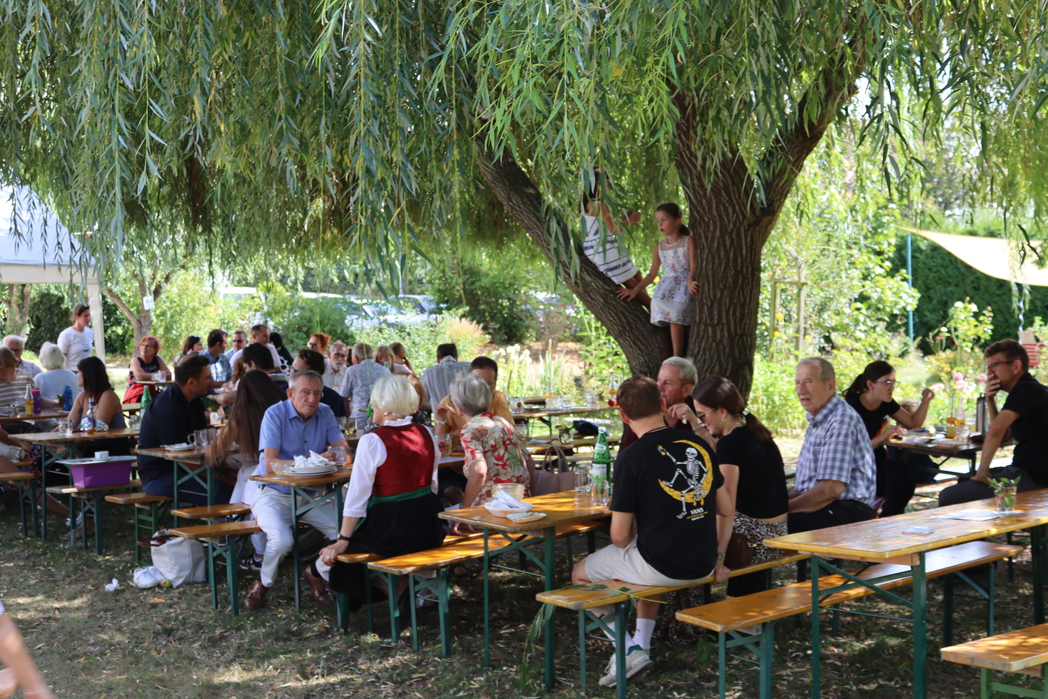 Am letzten heißen und sonnigen Sommersonntag feierte die Pfarrfamilie ihr Pfarrfest mit allem was dazu gehört: Begonnen wurde mit einer stimmigen Familienmesse mit schwungvoller Musik und vielen Kindern, die mitgestaltet haben, zu Mittag gab es reichlich Essen für die unterschiedlichen Geschmäcker und am Nachmittag Süßes beim Mehlspeisstandl oder kühles Spritziges beim Weinstand.