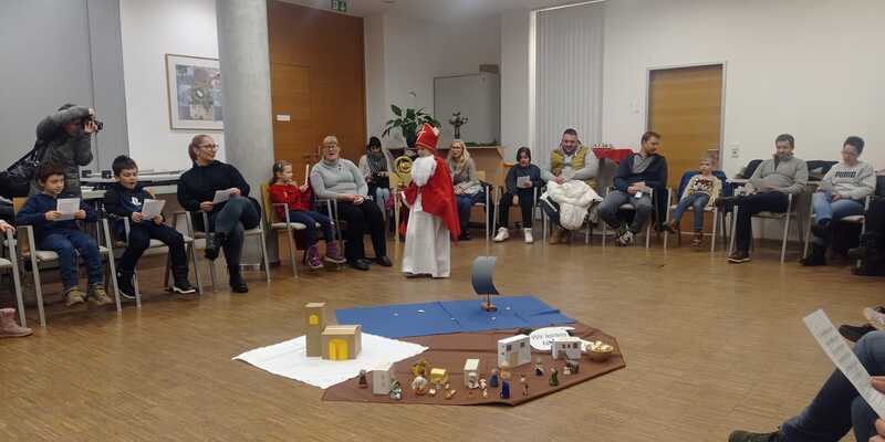 Unsere Nikolaus-Feier machte den vielen kleinen und großen Gästen im Pfarrsaal viel Freude. Es gab eine Nikolaus Geschichte zum Hören und Mitspielen, Lieder und Texte, die einige Kinder vorlasen. Anna hatte als verkleideter Nikolaus auch für jedes Kind etwas im Sack mitgebracht.