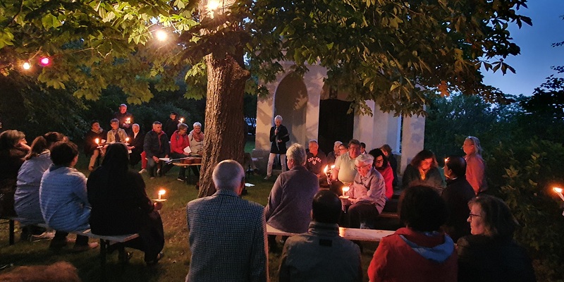 Der Abend klang mit Brot, Wein, vielen Gespräch und auch Gesang im wunderbaren Ambiente bei der Weinbergkapelle aus.