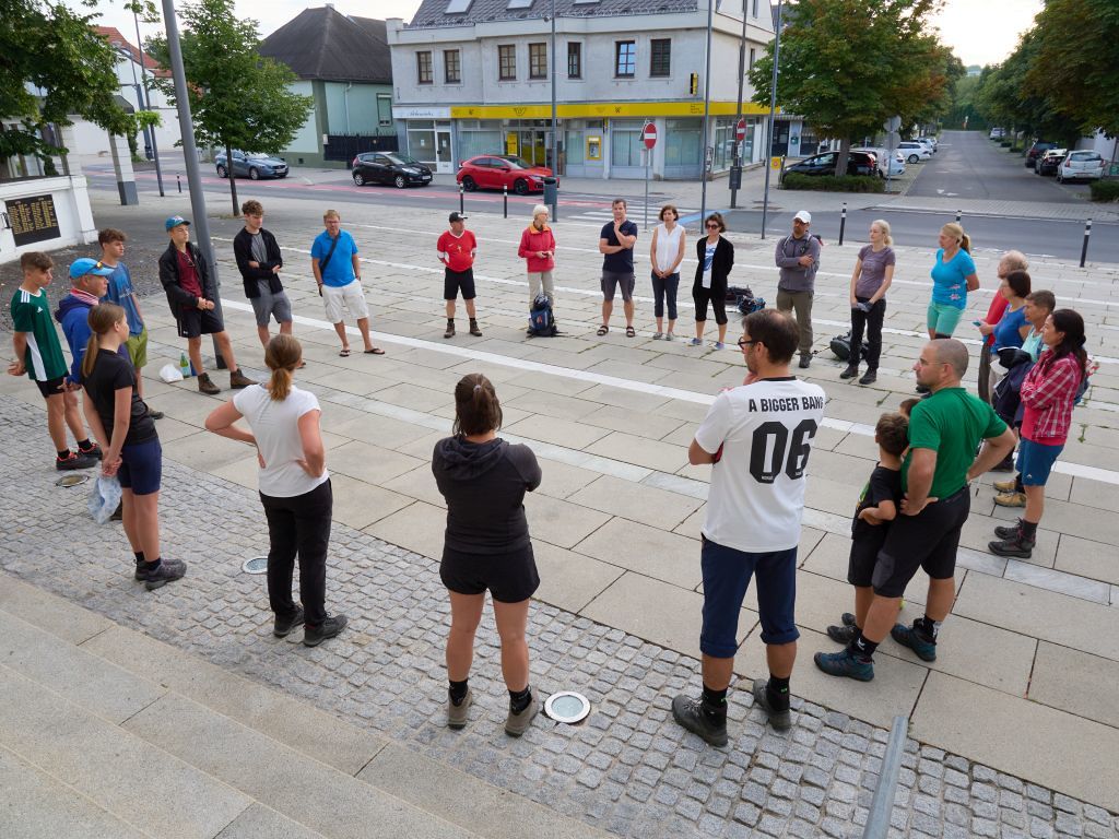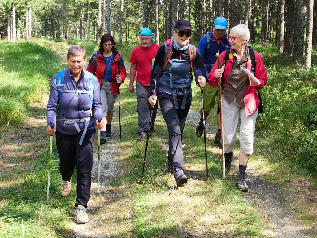 Treffpunkt bei der Pfarrkirche Oberpullendorf, Transfer nach Redlschlag, über den Hutwisch, den Zentralalpenweg 02 nach Mönichkirchen auf die StoaAlm bei der Bergstation Mariensee