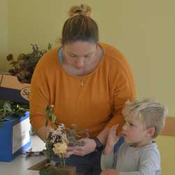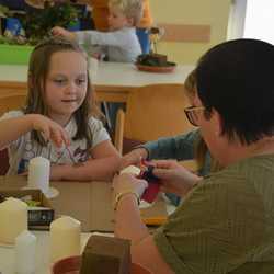 Am Donnerstag, 27. Oktober fand das zweite Treffen der Jahresfestkreisgruppe statt. Dieses Mal durften wir im Pfarrheim Grafenschachen zu Gast sein. Das Thema Allerheiligen konnten die Kinder bei verschiedenen Stationen erleben. So vergruben sie je eine Tulpenzwiebel in die Erde , die scheinbar stirbt. Die Kinder bastelten aber auch Gestecke aus totem Material und erweckten es so zu neuem Leben. Mit verschiedenen Motiven verzierten Mamas mit den Kindern Kerzen, um Licht in die Finsternis zu bringen. Der Höhepunkt für viele war das selbstständige Formen, Backen und Essen eines kleinen Allerheiligenstriezels.