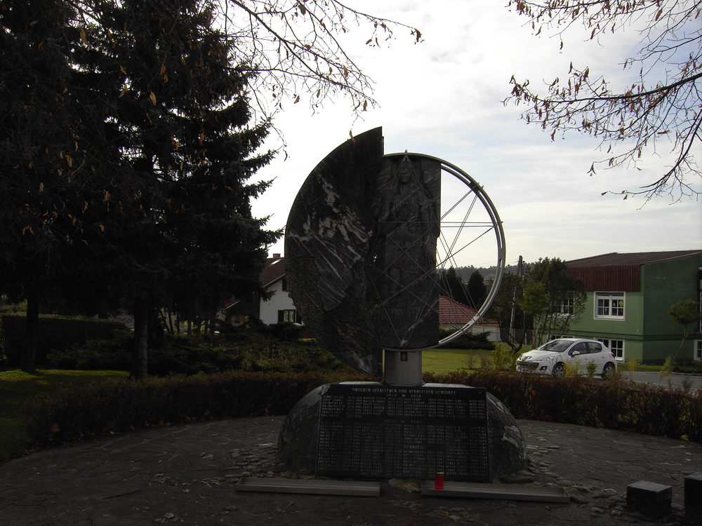 1995 wurde das alte Kriegerdenkmal abgetragen. Am 13. Oktober 1996 wurde eine Abstimmung über die Gestaltung abgehalten, wobei sich die Bevölkerung mehrheitlich für das „Model Fritz“ entschied, das von Manuela Fritz stammte. Im Dezember 1995 wurde die Bevölkerung auch hinsichtlich des Standortes befragt. 501 Stimmen entfielen dabei auf den Standort „Zentrum“ und 99 Stimmen bekam der Standort „Ortsfriedhof“. 1997 wurde das Friedensmahnmal in feierlichem Rahmen unter Anteilnahme der Bevölkerung und mit LH Karl Stix, LH-Stellvertreter Ing. Gerhard Jellasitz, dem Jägerbataillon 1 und der Militärmusik Burgenland eingeweiht.