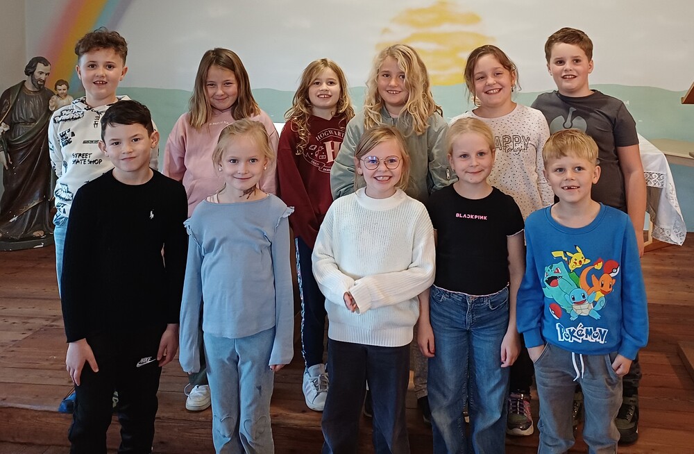 Zwölf Erstkommunionkinder bereiten sich heuer auf die Sakramente der Versöhnung und Eucharistie vor. Am 16. November feierten wir gemeinsam ihre Feier der Annahme, die sie zusammen mit anderen Kindern mit Lesen und Liedern mitgestalteten. Sie stellten sich auch vor und verrieten ihre Hobbys. Am Ende des Gottesdiensten erbaten drei Erstkommunionkinder vom letzten Jahr gemeinsam mit Pfarrer Norbert Gottes Segen für die neuen Erstkommunionkinder.