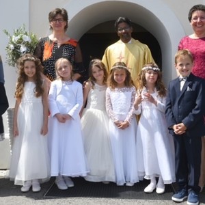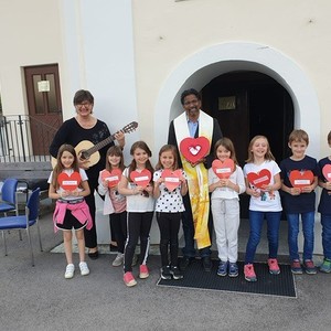 Die Anwesenheit von Familien und Freunden unserer Erstkommunionskinder machte diesen Tag für sie unvergesslich. Bei Sonnenschein hielt Pfarrer Sebastian die von den Kindern lang ersehnte Messfeier in der festlich geschmückten Kirche.