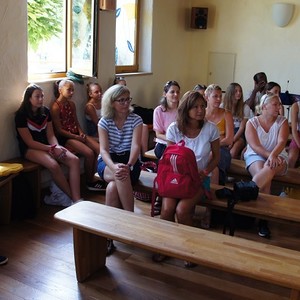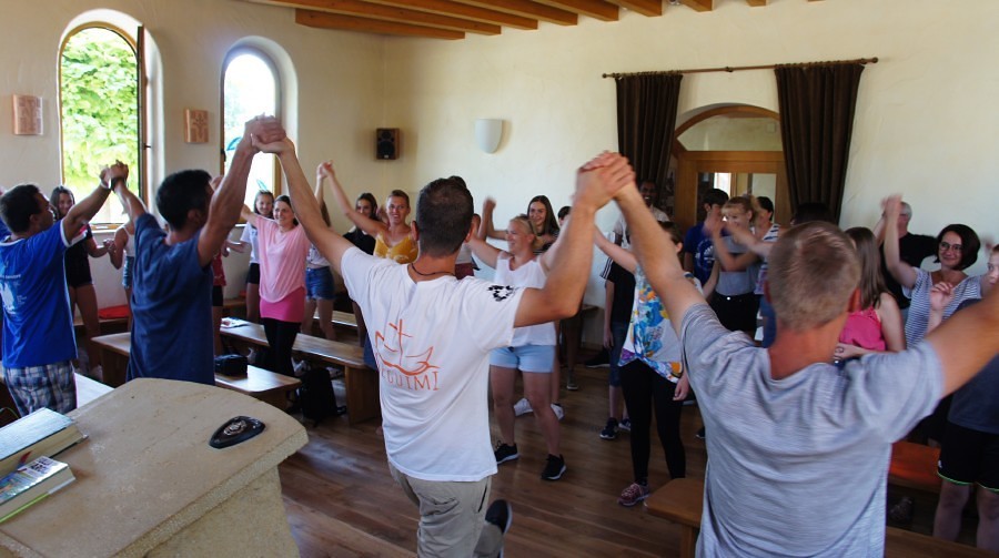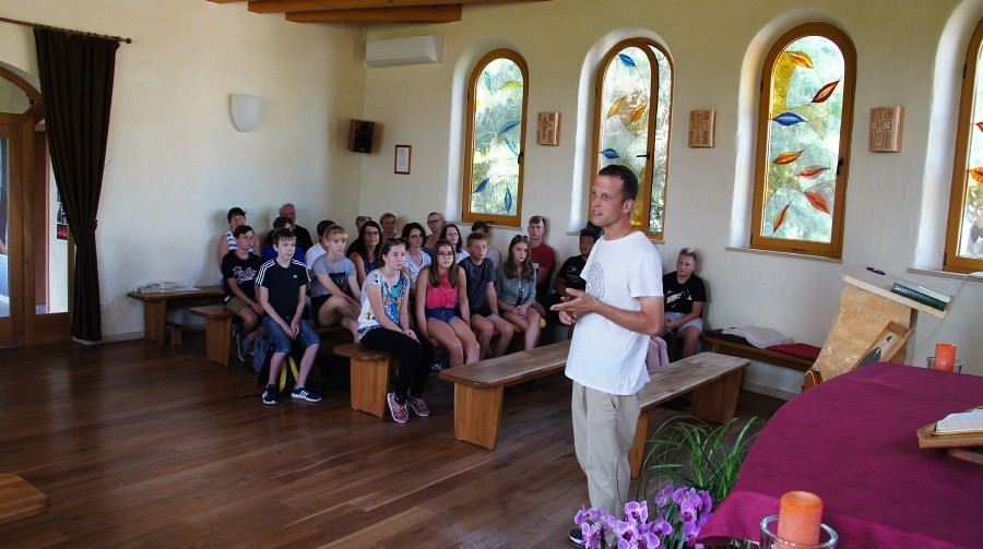 Alle zusammen waren wir eingeladen, zu Musik und Gesang nach bestimmten Bewegungen zu tanzen. Diese Form des Gebets, obwohl in italienischer Sprache gesungen wurde (Italienisch ist sozusagen die „Amtssprache“ in der Gemeinschaft), bereitete unserer Reisegruppe so große Freude, dass wir gar noch eine Zugabe erhielten. Ein Rundgang durch die Anlage der Gemeinschaft, von der Kapelle bis in den Kuhstall, war der Abschluss unseres Besuchs.
