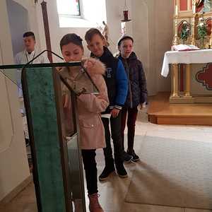 Nach den Fürbitten zogen wir in die Pfarrkirche ein und setzten den Gottesdienst mit Herrn Pfarrer Karall und den anderen Messbesuchern fort.
