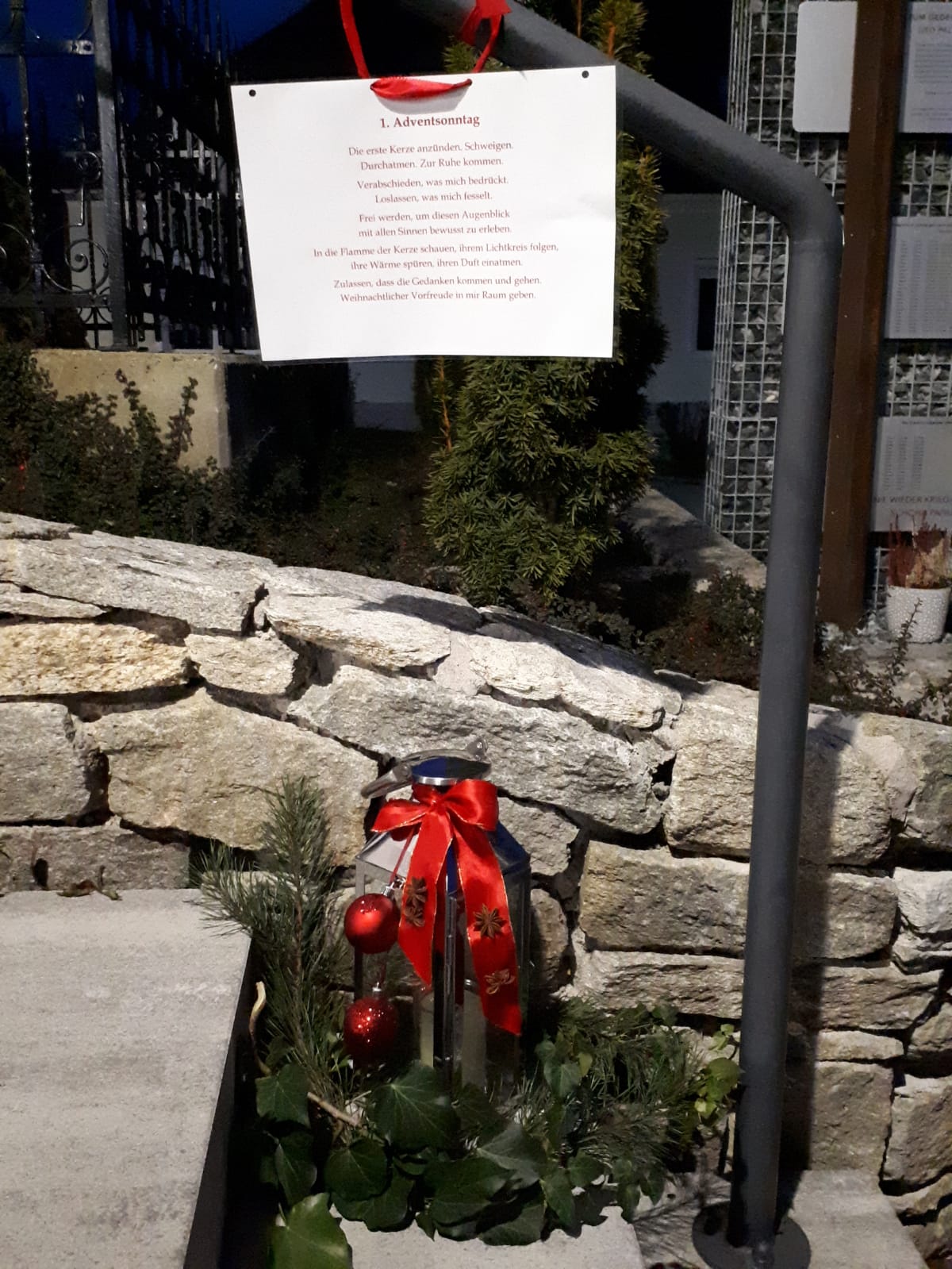 Die erste Kerze anzünden. Schweigen.