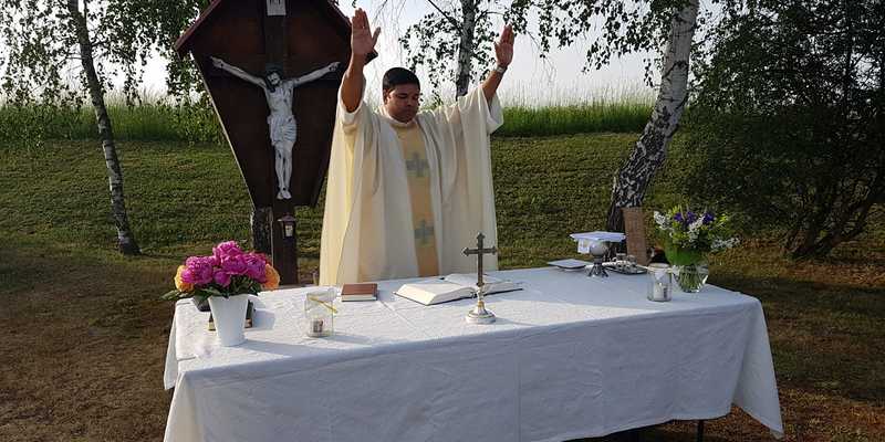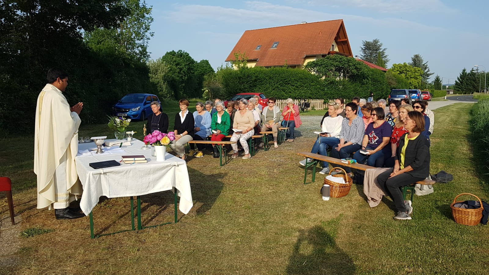 Unser Bitttag wurde nach 2 Jahren Pandemie wieder in gewohnter Weise begangen. Bei schönem Wetter in der Abendsonne feierten wir gemeinsam mit P. Dominik ( Mischendorf) die Hl. Messe beim Wegkreuz Richtung Rotenturm.