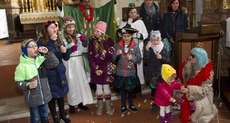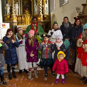 Bereits zum 2. Mal fand unsere Faschingsmesse statt. Mit den verkleideten Kindern wurde im Pfarrbüro gebastelt, gesungen und getanzt. Zu der Kommunion sind wir gemeinsam in die Kirche zurückgekehrt, wo wir unser einstudiertes Lied vorgesungen hatten. Nach dem Schlussgebet haben die Kinder Seifenblasen geblasen und Gedanken zum Fasching vorgetragen. Das lustige Fest ging mit dem anschließendem Pfarrkaffee zu Ende. Danke an Lady Gaga, dem Kücken, der Inuit, dem Schmetterling, der Piratin, dem Robin Hood und der La Catrina