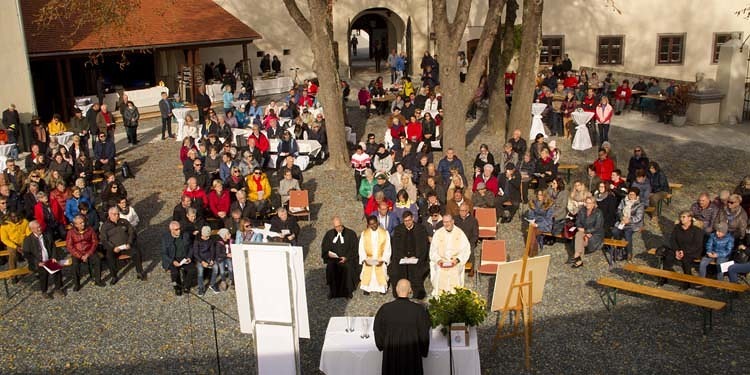 Der ökumenische Gottesdienst am Pfingstmontag, der abwechselnd in einer der beiden Kirchen gefeiert wird, oder gegenseitige Einladungen zu großen Festen sind längst Alltag geworden. Am "Weltgebetstag der Frauen" laden die beiden Konfessionen abwechselnd zum gemeinsamen Beten in ihre Kirchen ein. Auch bei der Sternsingeraktion ziehen evangelische Kinder Seite an Seite mit den katholischen als Könige durch unsere Stadt und sammeln Spenden für den guten Zweck. Ein besonderes Highlight im Oktober 2021 war ein gemeinsamer ökumenischer Festgottesdienst auf der Friedensburg Stadtschaining.