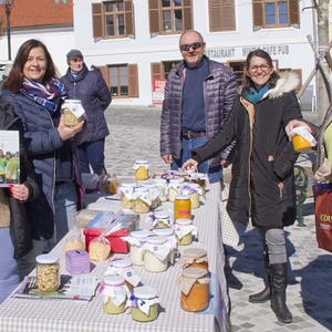 Am 12. März konnten bei kaltem, aber wunderschönem Wetter ca. 150 Suppen im Glas an den drei Ständen in Drumling, Altschlaining und Stadtschlaining gegen Spenden angeboten werden. In Stadtschlaining wurde am Stand auch Suppe ausgeschenkt, worüber sich der Verein Zeitbank 55 Plus sehr freute und in fröhlicher Runde Suppe verkostete.