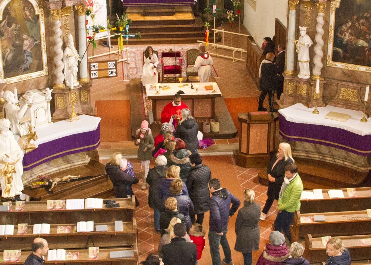 In jener Zeit ging Jesus nach Jerusalem hinauf. Als er in die Nähe von Betfage und Betanien kam, an den Berg, der Ölberg heißt, schickte er zwei seiner Jünger voraus und sagte: Geht in das Dorf, das vor uns liegt. Wenn ihr hineinkommt, werdet ihr dort einen jungen Esel angebunden finden, auf dem noch nie ein Mensch gesessen hat. Bindet ihn los, und bringt ihn her! Und wenn euch jemand fragt: Warum bindet ihr ihn los?, dann antwortet: Der Herr braucht ihn. Die beiden machten sich auf den Weg und fanden alles so, wie er es ihnen gesagt hatte. Als sie den jungen Esel losbanden, sagten die Leute, denen er gehörte: Warum bindet ihr den Esel los? Sie antworteten: Der Herr braucht ihn. Dann führten sie ihn zu Jesus, legten ihre Kleider auf das Tier und halfen Jesus hinauf. Während er dahinritt, breiteten die Jünger ihre Kleider auf der Straße aus. Als er an die Stelle kam, wo der Weg vom Ölberg hinabführt, begannen alle Jünger freudig und mit lauter Stimme Gott zu loben wegen all der Wundertaten, die sie erlebt hatten. Sie riefen: Gesegnet sei der König, der kommt im Namen des Herrn. Im Himmel Friede und Herrlichkeit in der Höhe! Da riefen ihm einige Pharisäer aus der Menge zu: Meister, bring deine Jünger zum Schweigen! Er erwiderte: Ich sage euch: Wenn sie schweigen, werden die Steine schreien.