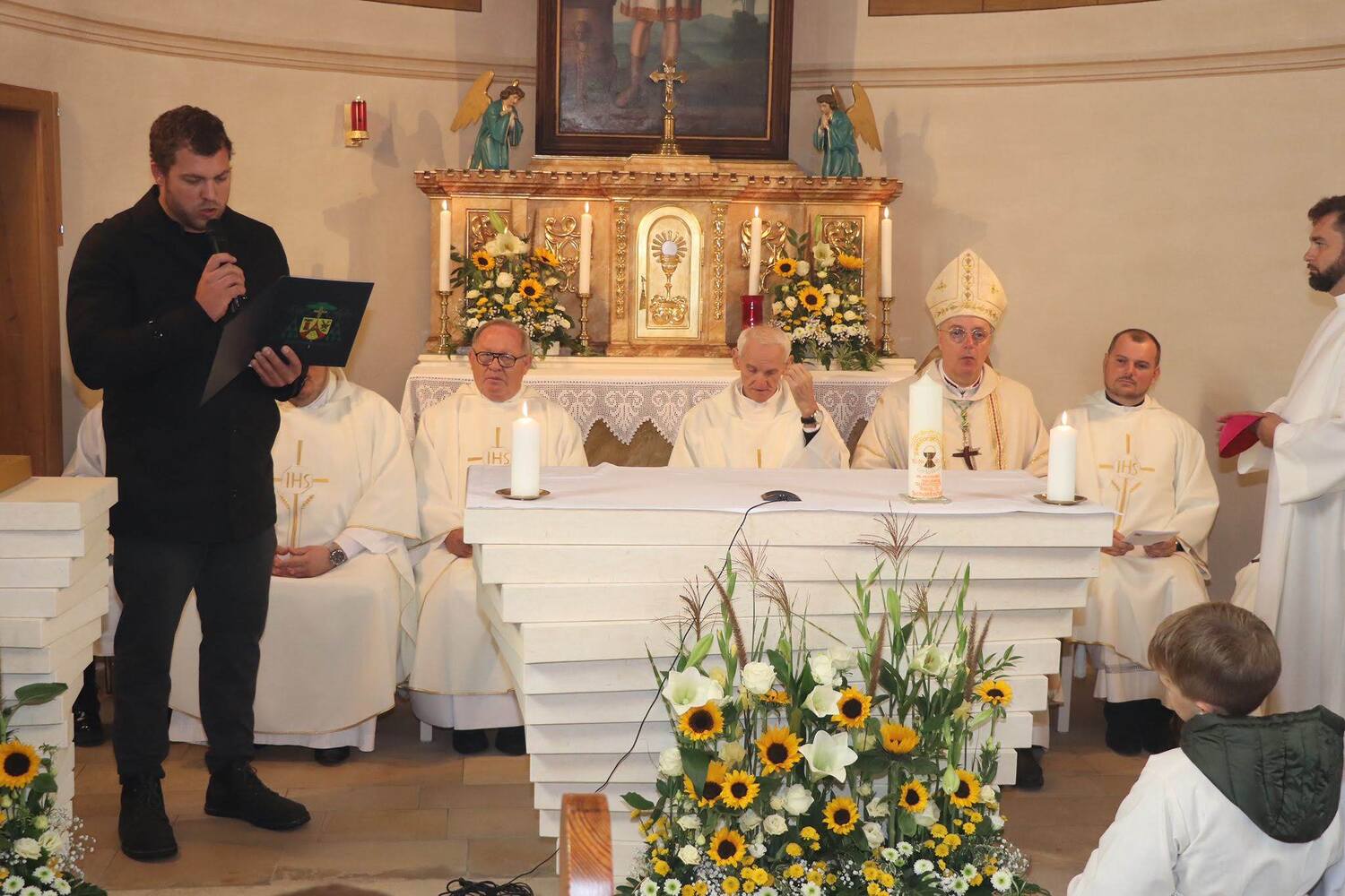Am Sonntag, 15. Oktober 2023 wurde in Gamischdorf ein großes Fest begangen, bei dem vier Ereignisse zu feiern waren: das Patrozinium unseres Seelsorgeraums (der Gedenktag des sel. Carlo Acutis ist jährlich am 12. Oktober), die Errichtung des Seelsorgeraums, die Weihe des neuerrichteten Altars in der Filialkirche samt Beisetzung von Reliquien des sel. Carlo sowie Segnung des neuen Ambos und der 40. Geburtstag unsers Pfarrmoderators David Grandits.