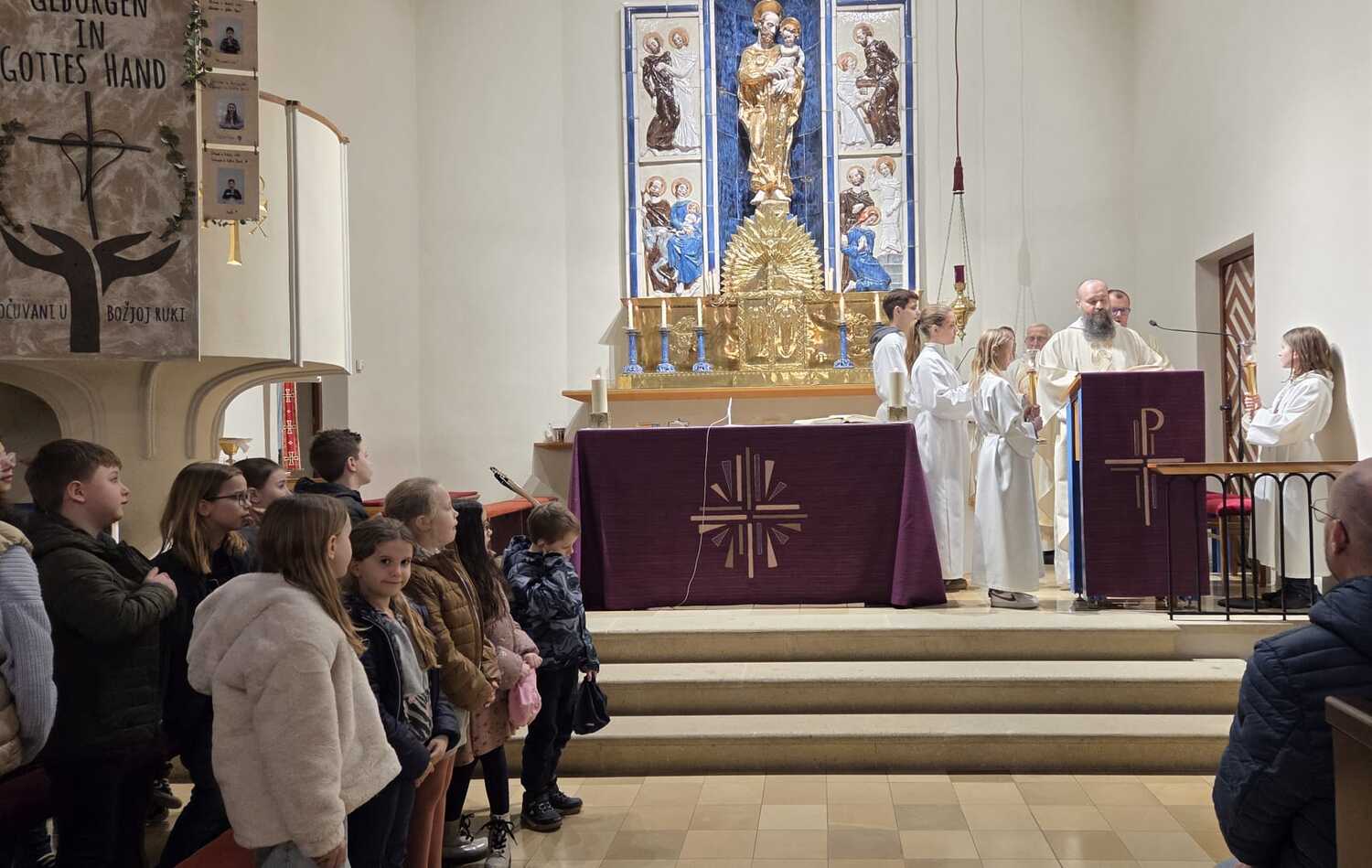 Am Hochfest des hl. Josef, dem 19. März 2026, feierte die Pfarre Güttenbach ihren Patron. Als Hauptzelebrant und Festprediger betonte Pfarrer Branko Kornfeind (Dürnbach) die Bedeutung des hl. Josef für die hl. Familie, für die ganze Kirche und für unsere Pfarre und unsere Familien. Der Chor HKDejci gestaltete den Festgottesdienst musikalisch, ebenso ein schwungvoller Chor der Kinder. P. Adalbert Gaspar (Unterwart) konzelbrierte mit unseren Priestern Marko Zadravec und Kurt Aufner bei der Festmesse, unterstützt von unseren Ministranten.