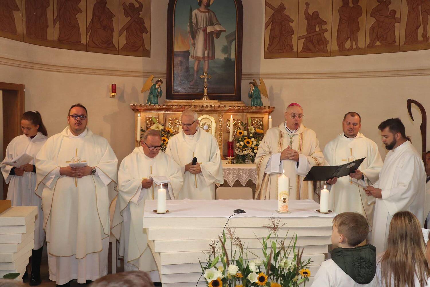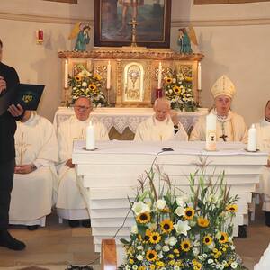 Am Sonntag, 15. Oktober 2023 wurde in Gamischdorf ein großes Fest begangen, bei dem vier Ereignisse zu feiern waren: das Patrozinium unseres Seelsorgeraums (der Gedenktag des sel. Carlo Acutis ist jährlich am 12. Oktober), die Errichtung des Seelsorgeraums, die Weihe des neuerrichteten Altars in der Filialkirche samt Beisetzung von Reliquien des sel. Carlo sowie Segnung des neuen Ambos und der 40. Geburtstag unsers Pfarrmoderators David Grandits.