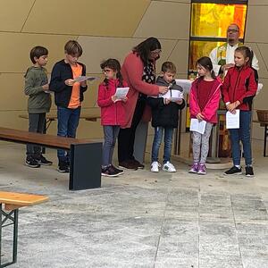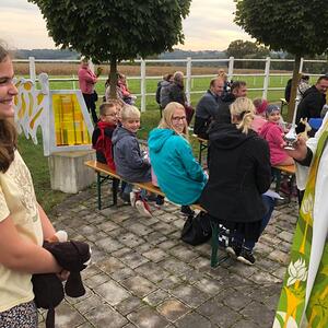 Hunde, Katzen, Hasen und weitere Tiere sowie alle Arten von Stofftieren fanden sich gemeinsam mit ihren Besitzern am 5. Oktober bei der Kreuzkapelle der Familie Jandrisic ein. Die Tiersegnung rund um den Gedenktag des Hl. Franz von Assisi und Welttierschutztag bei dieser besonderen Kapelle umgeben von einer Pferdekoppel hat schon Tradition. Wie in den Vorjahren kamen auch heuer wieder viele Zwei- und Vierbeiner, um sich den Segen von Pfarrer Thorsten Carich zu holen. Pastoralassistentin Sandra Krammer hatte die kindgerechte Gestaltung vorbereitet und die Gastgeberinnen Silvia und Sonja Jandrisic luden anschließend zu einer kleinen Stärkung ein. Vergelt's Gott!