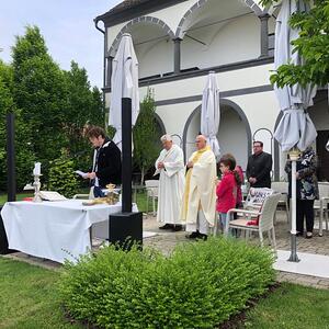 Am 18.05.2023 fand vor dem Kastell in Stegersbach die Festmesse anläßlich Christi Himmelfahrt statt, welche von Pfarrer Mag. Zdravko Gašparić gefeiert wurde. Die Gestaltung der Messe übernahm der Musikverein sowie die Volksschulkinder. Trotz der etwas kühlen Temperaturen nahmen viele Menschen an der Messe teil. Im Anschluß gab es in gewohnter Weise noch einen Frühschoppen durch den Musikverein Stegersbach.