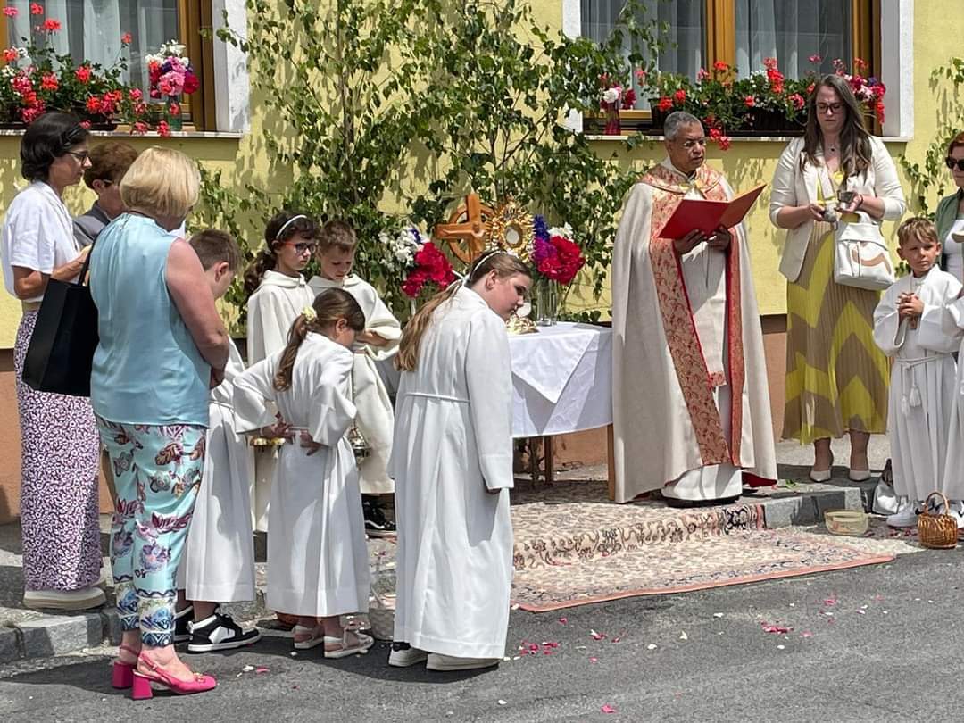 Bei wunderschönen Wetter konnte die Fronleichnamsprozession durchgeführt und das Allerheiligste unter dem Himmel durch die Ortschaft getragen werden.