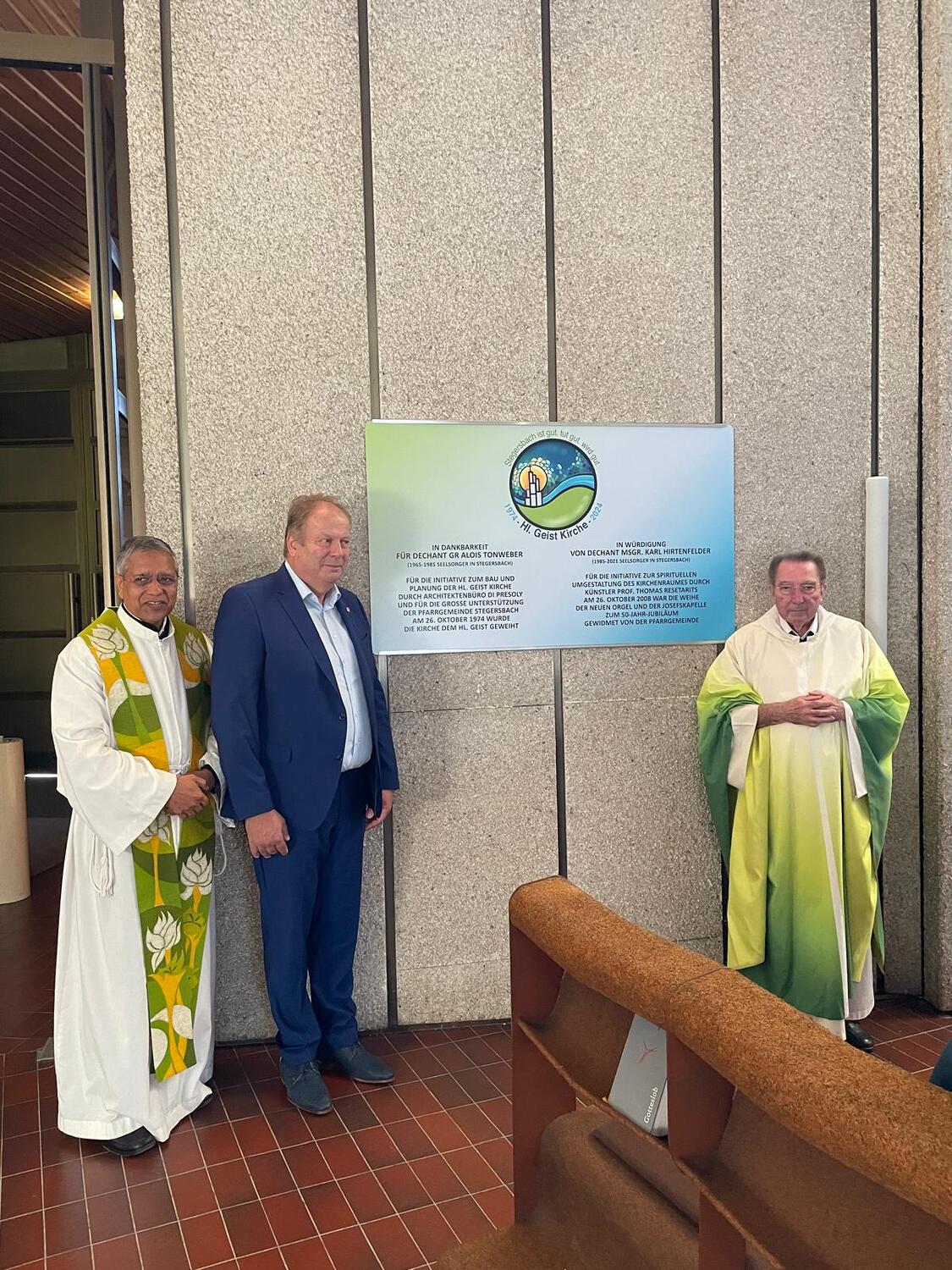 Unser pensionierter Pfarrer Hirtenfelder feierte mit Pfarrer Thomas Vayalunkal den Gottesdienst und enthüllte seine Tafel selbst, für den verstorbenen Alois Tonweber übernahm dies dessen Neffe Josef Korpitsch.