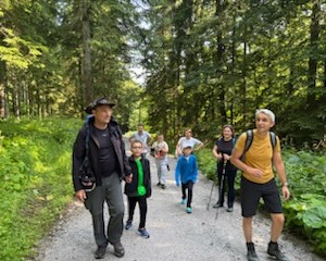 Unser Weg führte uns entlang der 4. Etappe des Pielach Taler Pilgerweges und so ging es zunächst rauf auf den Sabel, den die Minis bravourös meisterten. Wir hatten zwar ständig ein Begleitfahrzeug in der Nähe, aber noch wollte keiner einsteigen. Nach einer kurzen Rast ging es ab dem Sabel weiter nach Fadental und weiter zum Hubertussee mit der romantischen Bruder Klaus Kirche. Dort hatten wir uns alle eine lange Pause verdient.