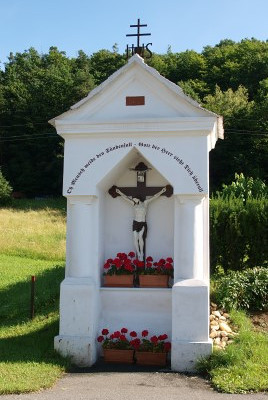 Ursprünglich wurde hier von Ignaz Fabits, Stegersbach 269, laut Stiftungsbrief ein Kreuz errichtet. Das Stiftungskapital betrug 20 Gulden, um mit den Zinsen das Kreuz aufrecht zu erhalten. Über die weitere Baugeschichte ist nichts bekannt. Heute wird der gemauerte Bildstock von den Nachkommen des Stifters erhalten. Maiandachten des Ortsteiles „Grabenstraße“ finden hier statt.