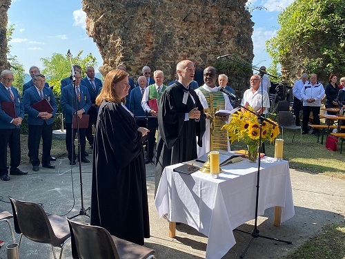 Dreiländerecktreffen am 05. September 2021 mit Ökumenischem Gottesdienst auf der Burgruine am Schlossberg.