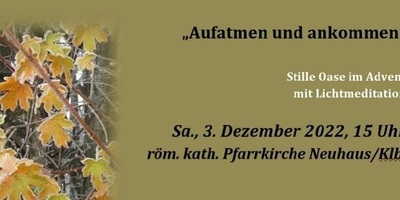 Samstag, 03. Dezember 2022, 15:00 Uhr - röm. -kath. Pfarrkirche Neuhaus / Klb. Stille Oase im Advent mit Lichtmeditation.