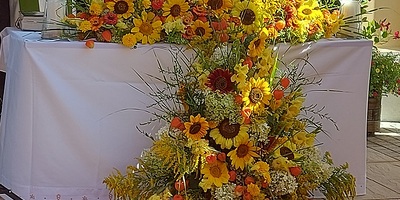 Festmesse auf dem Kirchplatz, anschließend gemütliches Beisammensein bei köstlichem Speis und Trank.
