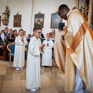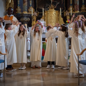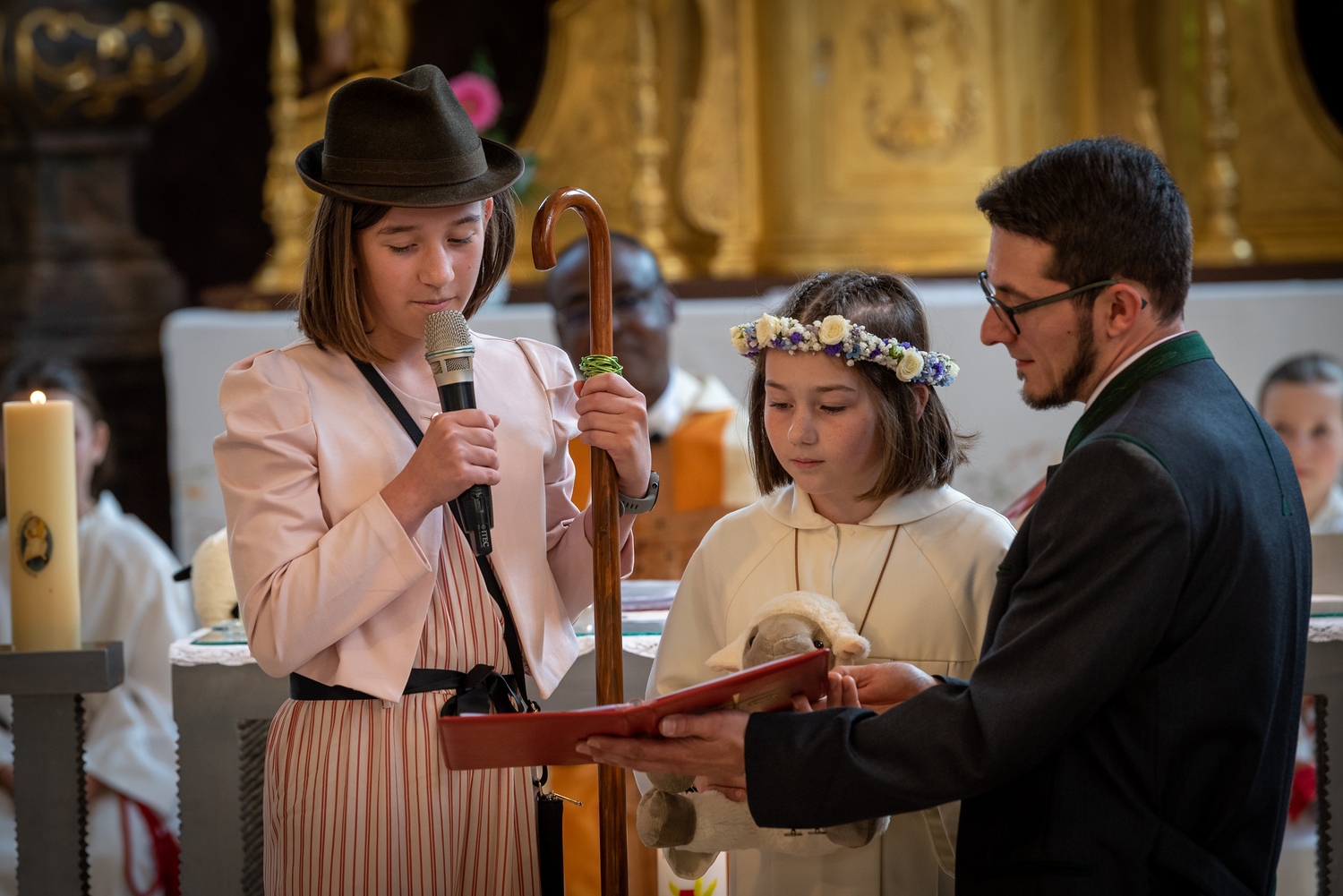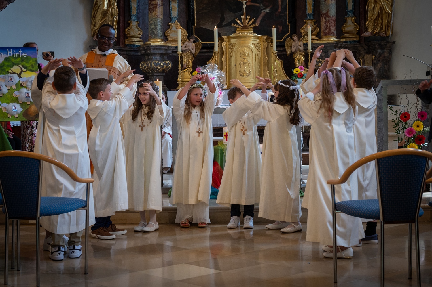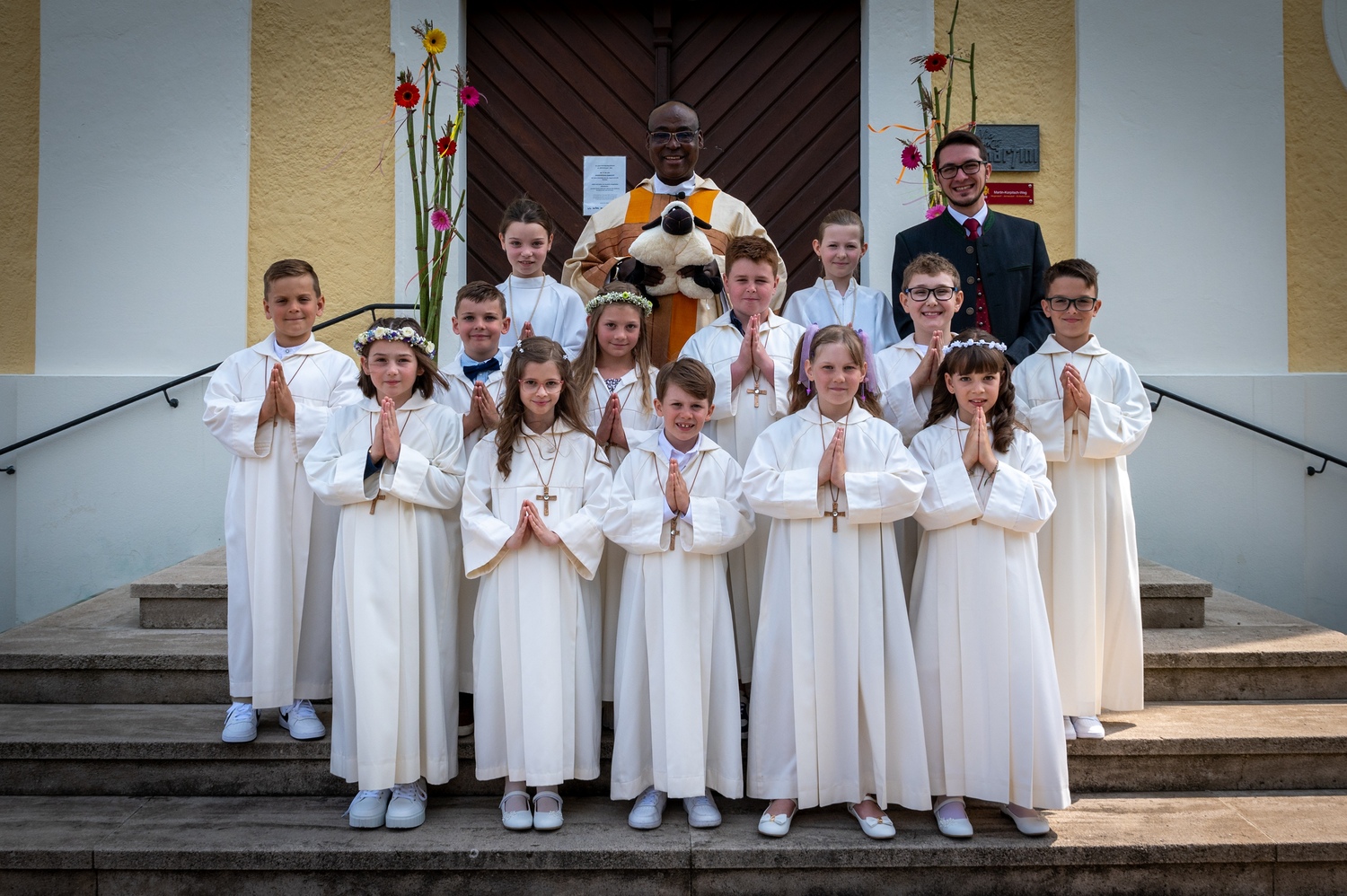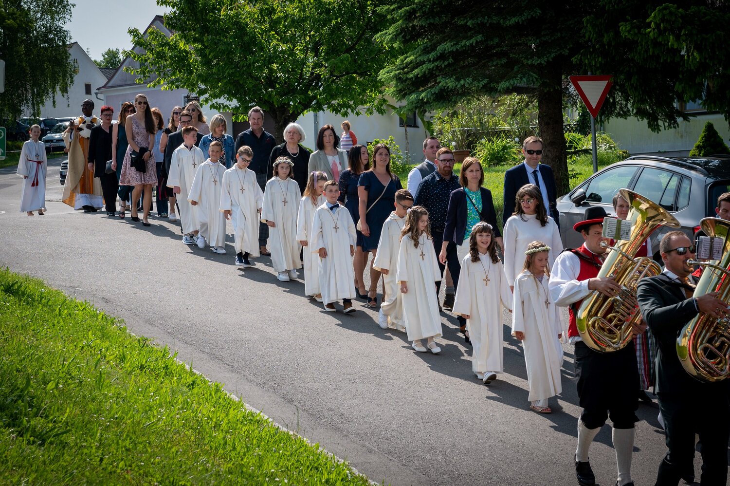 "Derr Herr ist mein Hirte" - unter diesem Motto stand die heurige Erstkommunion unserer Pfarre, die traditionell am Pfingstmontag begangen wurde. Feierlich begleitet vom Musikverein St. Martin an der Raab zogen unsere elf Erstkommunionkinder gemeinsam mit ihren Taufpatinnen und Taufpaten, dem Lehrkörper und Dechant Martin-Ralph Kalu in die Kirche ein. Der Gottesdienst mit dem würdigen Kommunionempfang der Kinder wurde musikalisch von Nadine Baumgartner, Steffi Kern und Markus Pfeifer umrahmt und durch Texte der Kinder mitgestaltet. Im Anschluss wurden alle Mitfeiernden vom Pfarrgemeinderat auf kleine Speisen und Getränke eingeladen. Danke an alle, die zum Gelingen dieses besonderen Tages beigetragen haben!
