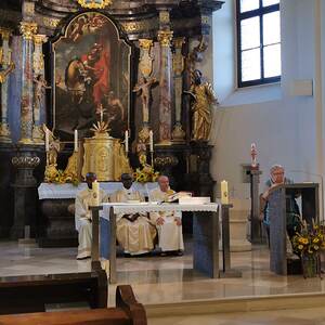 Im Anschluss wurden noch zahlreiche Gespräche, am neu gestalteten Kirchenvorplatz bei kühlen Getränken, leckeren Mehlspeisen und Gebäck, organisiert durch den PGR, geführt.