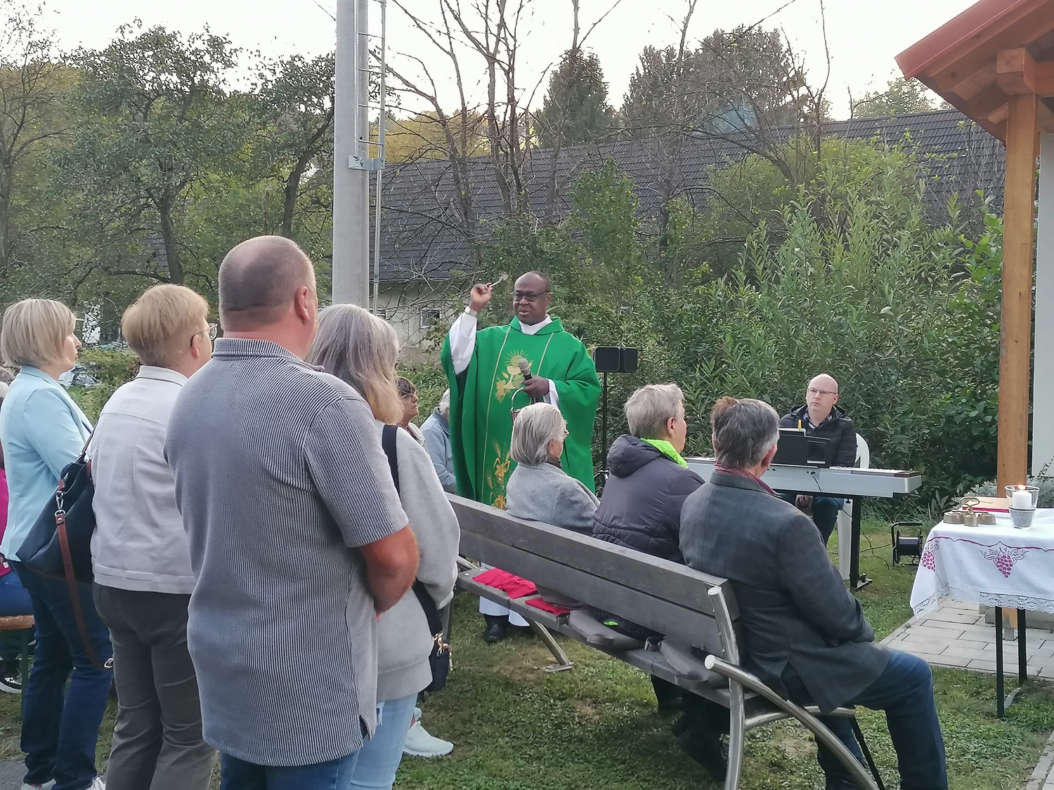 Im Zuge der Hl. Messe wurde die neue Statue von Dechant Martin-Ralph Kalu gesegnet.