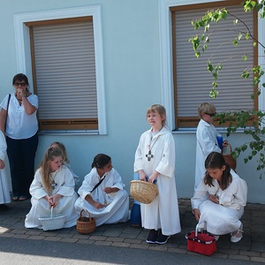 Unsere Erstkommunionkinder, Kindergarten- und Schulkinder sowie die Bevölkerung von Sankt Martin an der Raab nahmen an der Fronleichnamprozession teil.