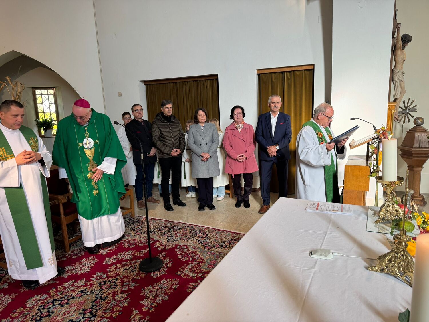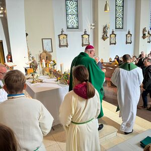 Am Sonntag dem 19. Oktober 2025 fand anlässlich der Eröffnung des neuen Seelsorgeraumes "Maria Weinberg-Unteres Pinkatal" eine gemeinsame Messe mit Diözesanbischof Mag. Dr. Ägidius Zsifkovics, Dechant Mag. Karl Schlögl und Kaplan Zoltan Csiki in Deutsch Schützen statt. Der neue Seelsorgeraum umfasst die Pfarren: Deutsch-Schützen, Sankt Kathrein, Bildein, Eberau, Gaas/Maria Weinberg und Moschendorf. Die Messe wurde vom Chor "Like a Rainbow" musikalisch begleitet. Im Anschluss an die heilige Messe wurden alle Mitfeiernden aus dem Seelsorgeraum zur Agape eingeladen.